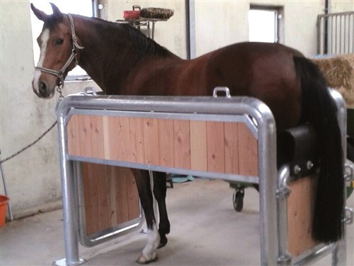 Ce stand robuste permet d’examiner et de peser les chevaux en toute sécurité. Les portes s’ouvrent à l’avant et à l’arrière, offrant un accès facile pour l’animal.