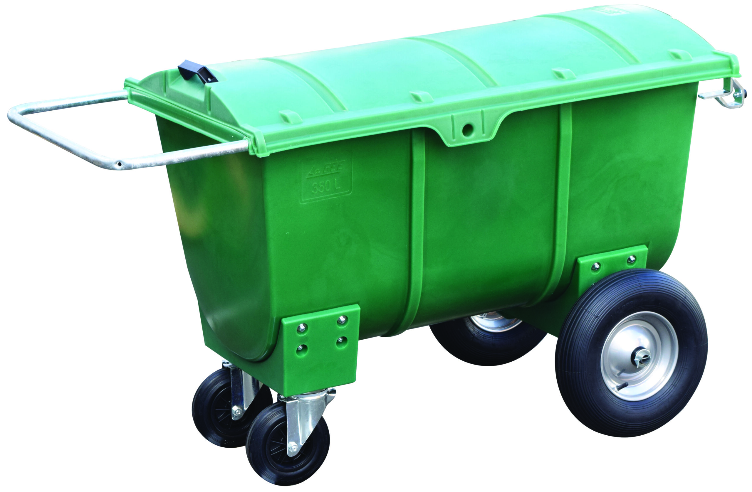 - Facile à déplacer : 2 roues fixes avant (Ø 400 mm) avec jantes métalliques et 2 roues pivotantes (Ø 200 mm), dont une avec frein, assurant une bonne stabilité et maniabilité.